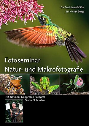 Eine meiner Vorlieben ist die Makrofotografie! Die große Welt der kleinen Dinge - eine Spielwiese für den Fotografen: Farben, Strukturen und Finessen treten in den Vordergrund und lassen den Betrachter eintauchen in die Wunderwelt der Natur. Oft hat man nur wenige Sekunden Zeit, um eines der seltenen Bewohner des Regenwaldes abzulichten. Da nutzt nur Erfahrung im richtigen Umgang mit der Fotoausrüstung. Intuitiv entscheidet man über die richtige Wahl von Blende und Verschlusszeit oder den genau dosierten Einsatz von Blitzgerät oder Reflektor. Basierend auf meinen jahrelangen Erfahrungen und veranschaulicht anhand von Beispielfotos erkläre ich den Teilnehmern die Vielfältigkeit der Natur- und Makrofotografie.